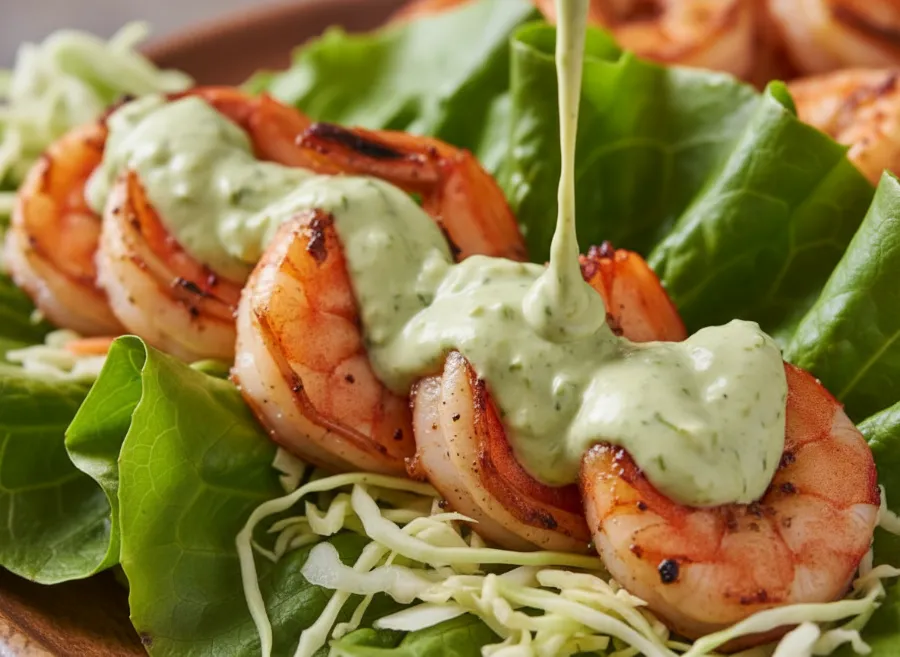 - Store cooked shrimp, avocado crema, and toppings separately in the fridge; assemble fresh lettuce wraps right before eating.