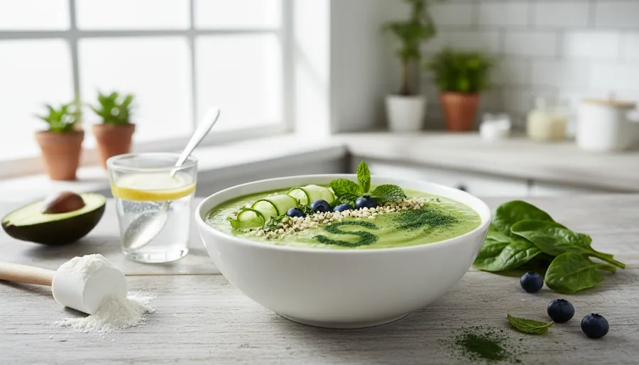 Green Goddess Protein Smoothie Bowl (Spinach, Avocado, High-Protein Spring Detox).