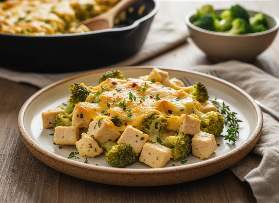 Cheesy High-Protein Chicken Broccoli Keto Casserole is the kind of weeknight dinner that checks every box: easy prep, one pan, family-friendly, and macro-friendly for a low-carb lifestyle. Tender pieces of chicken and bright green broccoli are baked in a rich, creamy cheese sauce until everything is hot, bubbly, and lightly golden on top. With a strong protein base and plenty of satisfying fats, this dish keeps you full while staying within keto carb limits.