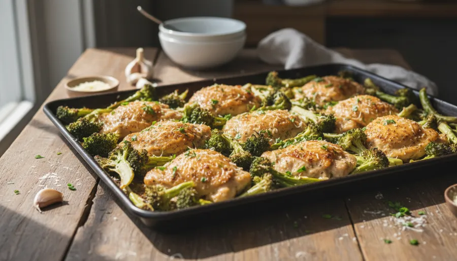 Garlic Parmesan Sheet-Pan Chicken & Broccoli (High-Protein, Low-Carb 30-Minute Dinner)