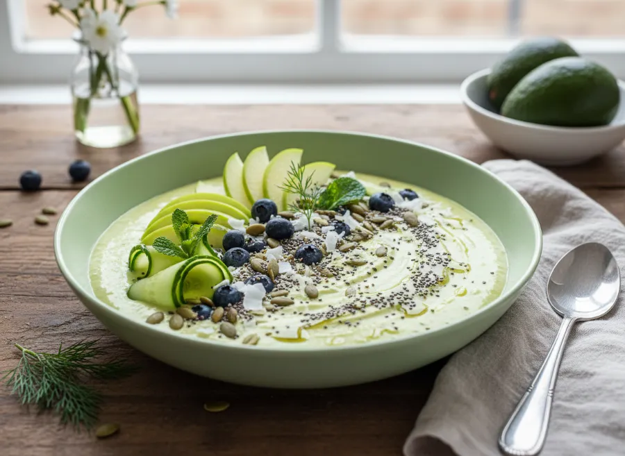 Green Goddess Protein Smoothie Bowl (Spinach, Avocado, High-Protein Spring Detox).