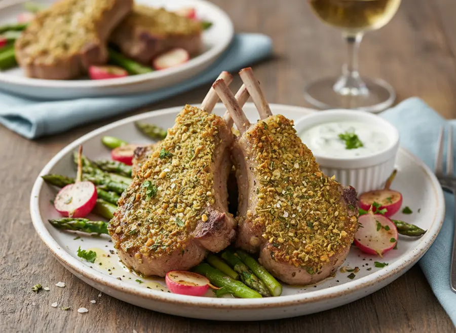 For Pinterest, photos of golden-brown lamb chops with visible herb crust, garnished with fresh rosemary and lemon, will perform extremely well in Easter dinner and special occasion feeds.