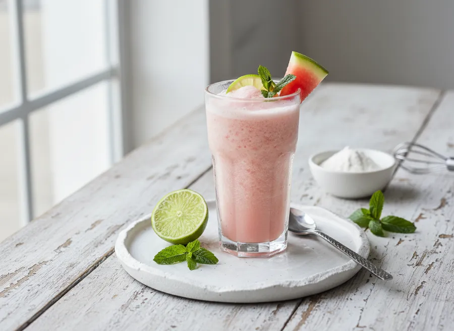 Before pouring, taste the slushie directly from the blender and adjust sweetness with an additional half teaspoon of powdered monk fruit if needed. Add an extra squeeze of lime if you want more citrus brightness. The balance should be intensely watermelon-forward with a bright lime finish and a subtle vanilla undertone from the protein powder that adds depth without announcing itself overtly.